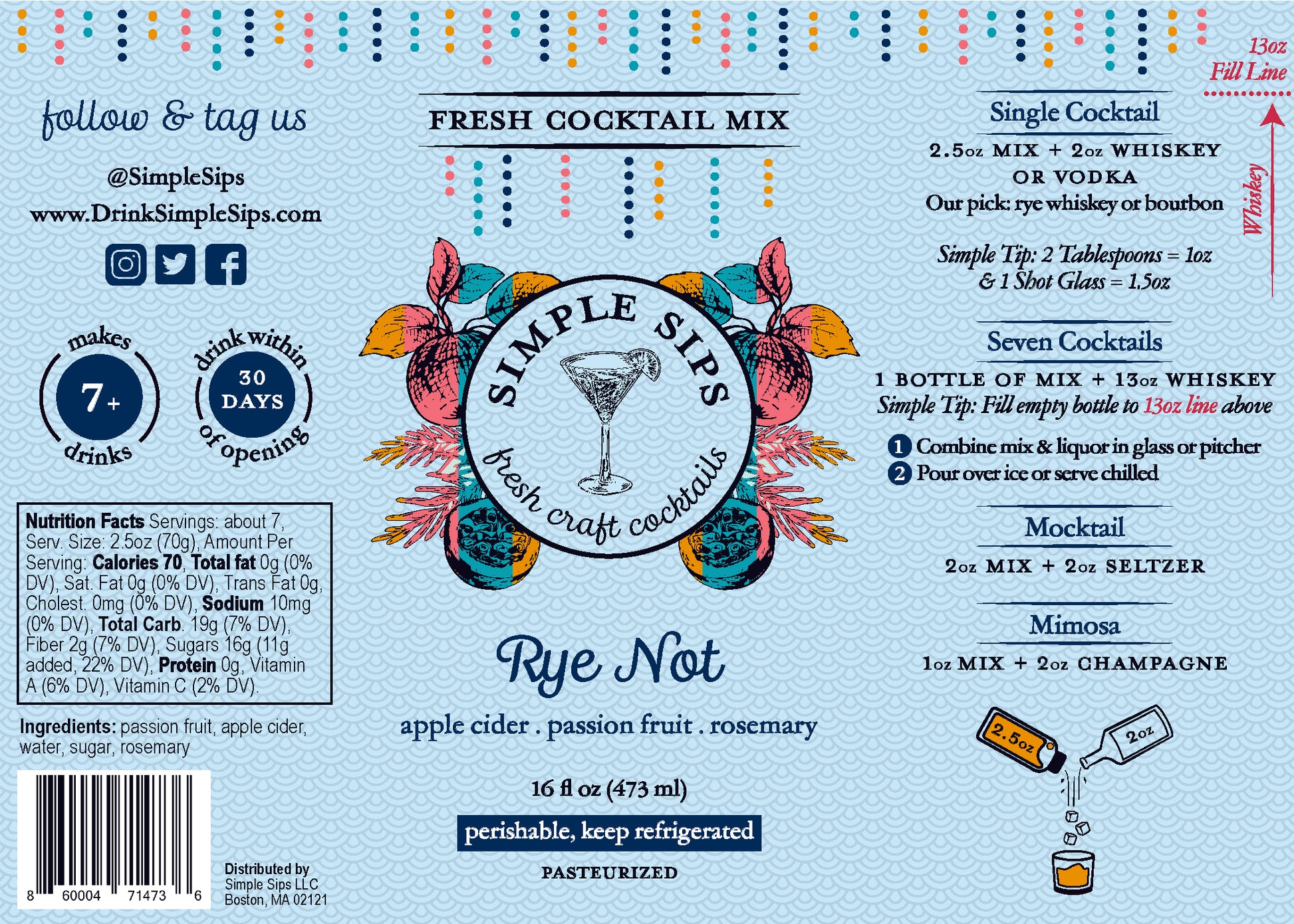 Rye Not: This is our OG flavor, the one that started it all and keeps everyone coming back for more. The balance of tart passion fruit alongside the herbal rosemary and local apple cider is exactly what our favorite whiskey has always been missing.