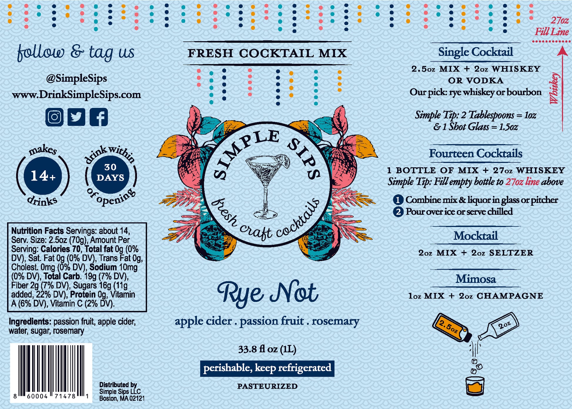 Our blends: We combine the perfect proportions of fruit purée, juice and herbal syrup to create fresh craft cocktails delivered right to your door. Our 16oz bottles of Rye Not make 7+ cocktails and our 1 liter bottles make 14+.